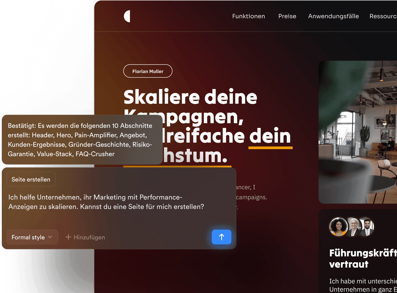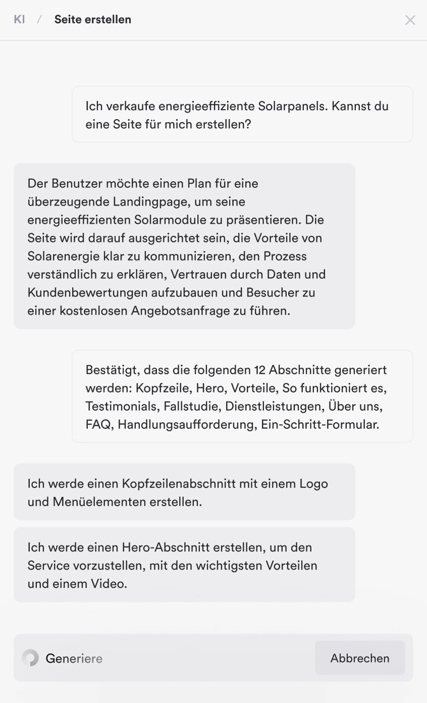 Der mit den neuesten Technologien optimierte Onepage-Editor reagiert sofort auf fast jede Aktion, die du beim Erstellen einer Seite durchführst.