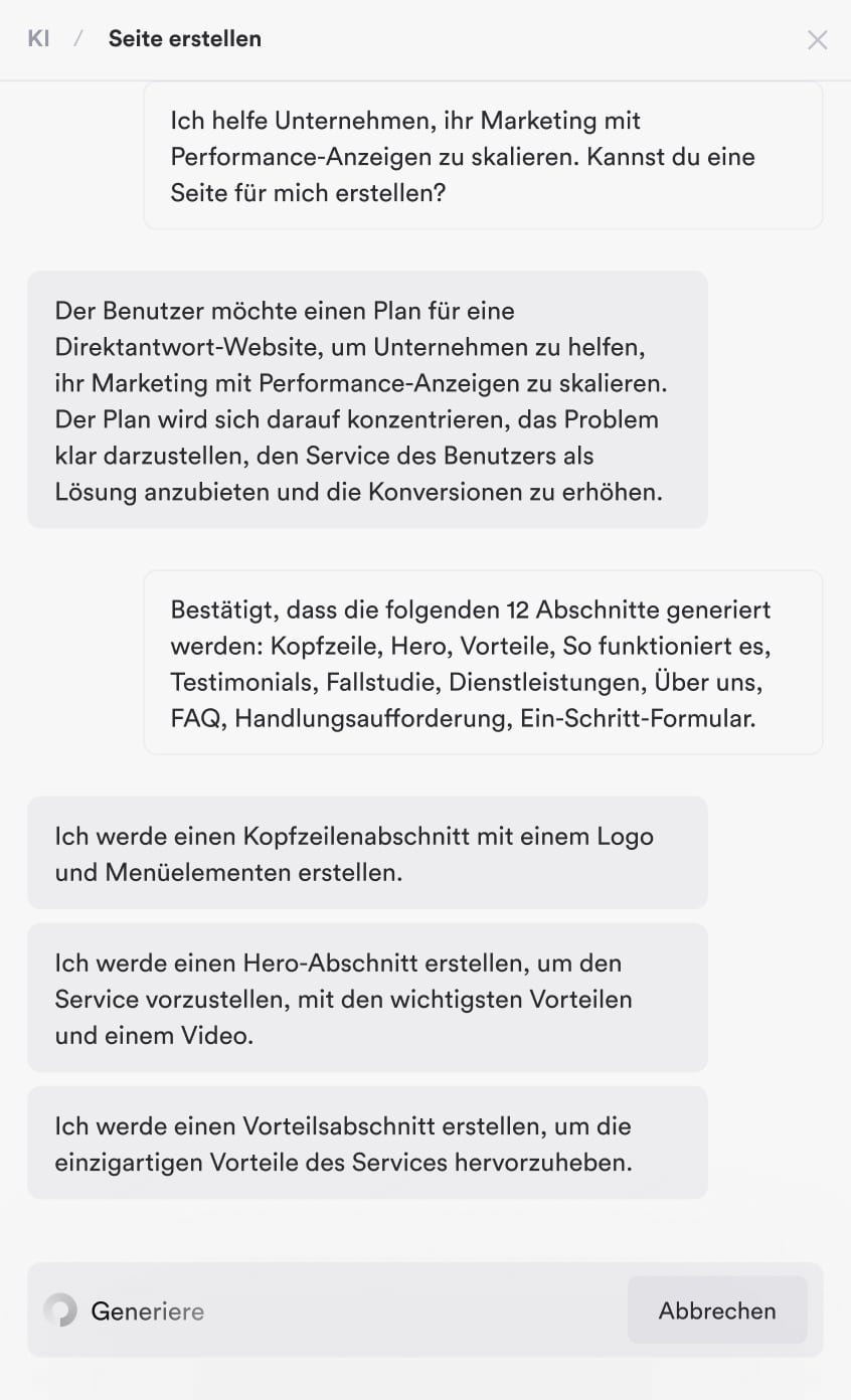 Endlich ohne Frustration neue Seiten erstellen. Erziele die gewünschten Ergebnisse extrem schnell dank der einfachen Bedienoberfläche von Onepage